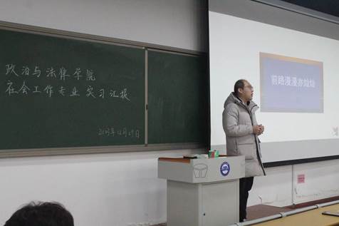 为检验20级学生的实习成果,提供一个学生实习经验分享交流的平台,政治与法律学院于2023年12月29日上午在208教室举办了20级社会工作专业学生实习汇报活动,政治与法律学院副院长魏成、灯塔社会工作者协会负责人赵越以及社会工作系所有老师,20社工、21社工、22社工和23社工的所有学生参与汇报会。