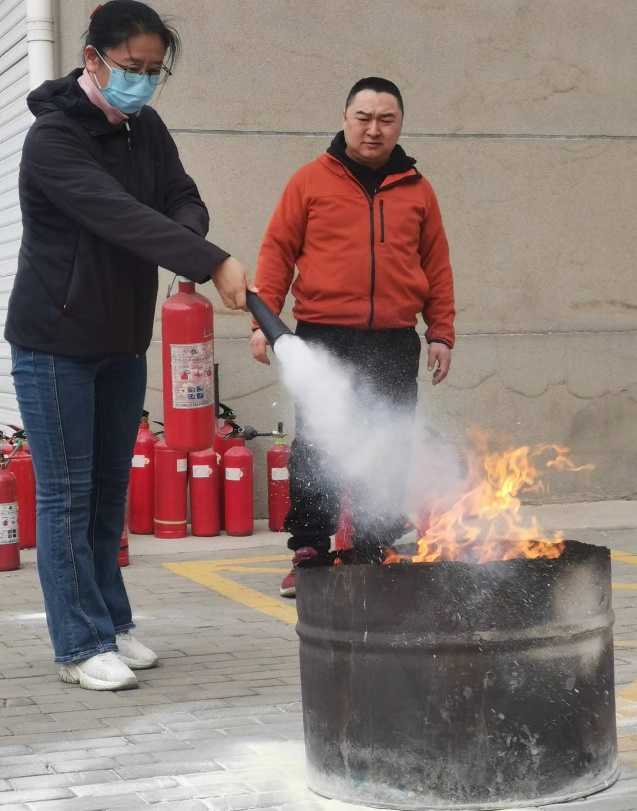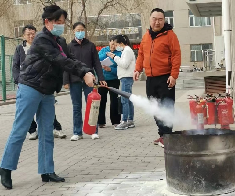 培训由院长王芳主持,邀请保卫处张晓刚、高峰一行做培训,物理学院全体教师参加。培训中,主讲高峰首先例举从全国范围内影响较大的火灾事故,给教师生动形象地讲述生活中如何预防火灾,及时报警、如何扑救初期火灾,正确使用消防器材,如何正确逃生等消防知识。随后,组织教师们在物理楼和生化楼之间的空地进行消防演练,实操灭火器灭火,熟练掌握了不同灭火器的操作方法。