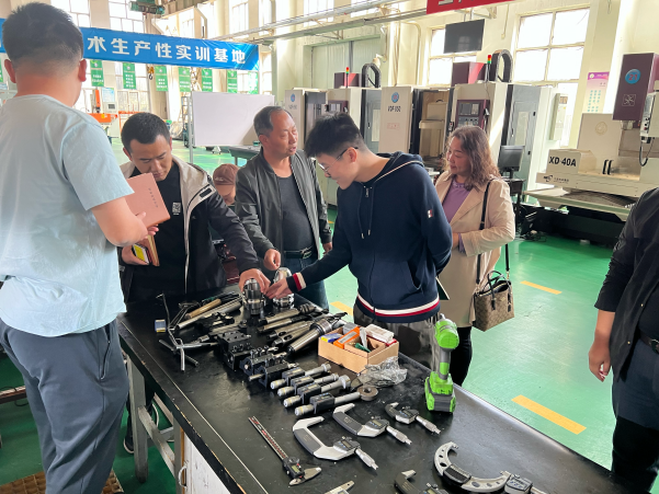 在活动开始前,双方人员首先互相介绍了所在单位的发展历程和建设现状,并肯定了对方在各自领域做出的贡献及成绩。在此基础上,各单位围绕当前院系建设发展过程中存在的问题和面临的挑战进行了讨论,逐一交换了观点。接下来,在包头机械工业职业学校负责老师的带领下,先后参观了生产性实训基地和国家产教融合实训基地。在参观过程中,两个单位共同关注智能制造和现代控制实习实训的发展与建设,同时,就园区大学和职业学校在学生教学、实训、竞赛指导方面的合作进行了交流。