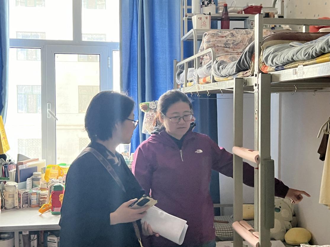 走访过程中,老师与同学们亲切交谈,逐一了解了大家目前的学习、生活、就业等情况,就宿舍卫生、用电规定、学生行为规范、假期出行安全等事宜进行了提醒和交流,并对学生们提出的困难和诉求进行了详细解答。