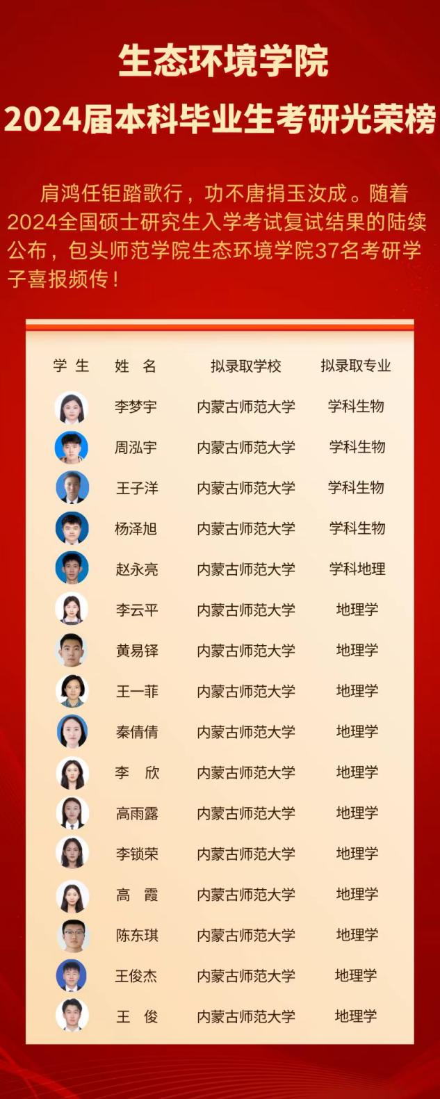 为激励同学们追求卓越,促进我院学风建设,现公布2024届毕业生考研光荣榜,并向所有考研上岸的同学表示热烈的祝贺!