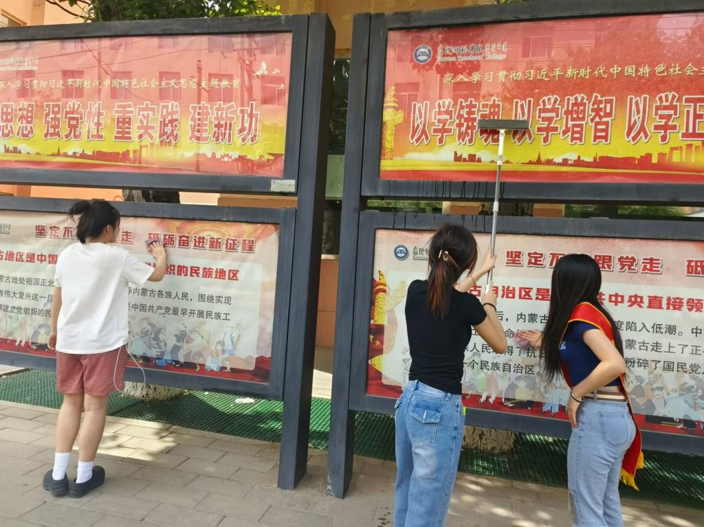 志愿服务活动。学生会办公室于2024年5月9日开展志愿实践活动,共25名学生参与其中。同学们在参与校园清洁志愿活动过程中,一丝不苟的对校园公示牌进行清洁,同学们团结合作,分工明确,多个小组同时进行,将校园内的每一块公示牌都擦拭如镜。劳动任务结束后,同学们书写了心得体会,有的同学写下“劳动创造幸福,奋斗铸就伟大”的励志篇章,深刻的将劳动精神体现在当代大学生的精神内风貌之中;还有的同学写下“劳动最光荣”的金句,五个字却蕴含了千年以来中华民族对于劳动内涵的深刻理解;更有同学引用人民日报金句:“一个人只有树立正确的劳动观,才能真正理解劳动的本质和价值,准确掌握历史前进、社会运转的内在机理”,深刻的展现了劳动的重要性。