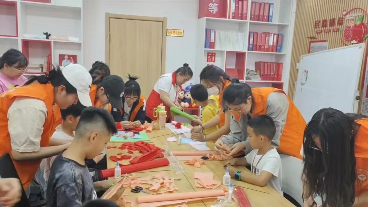 学院团总支于2024年5月12日前往青山区迎宾社区开展“童心童乐,妙笔生花”母亲节手工花束制作志愿活动,共有10名同学参加。志愿者提前准备了丰富的制作材料,皱纹纸、彩纸、胶水等。在手工制作环节,孩子们在志愿者的帮助下,充分发挥自己的想象力和创造力,制作出了美丽的手工花束和贺卡。孩子们用心地选择花朵的颜色和搭配,将对母亲的爱融入到每一个细节中。制作过程中,志愿者们穿梭在孩子们之间,不时给予帮助和鼓励。孩子们也积极与志愿者交流,分享着与母亲之间的温馨故事,现场气氛温馨而感人。最后,孩子们将自己制作的花束献给了母亲,并送上了最真挚的祝福。