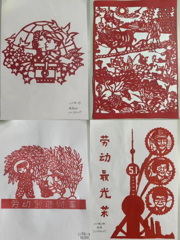 剪纸作品征集活动。易班工作站于2024年5月13日举办了剪纸作品征集活动,共收到50余份作品。同学们的作品丰富多彩,有的采用精致而美丽的中国剪纸风格,线条流畅,造型生动;有的则运用各种现代劳动标志,寓意深刻,富有创意;还有的剪出了劳模的伟大形象,同学们不仅深入了解中华传统文化,而且体会到了劳动者的艰辛,同时鼓励同学们珍惜时光,向劳模学习,坚韧不拔,用自己的双手和智慧,积极投身于劳动和奋斗中。