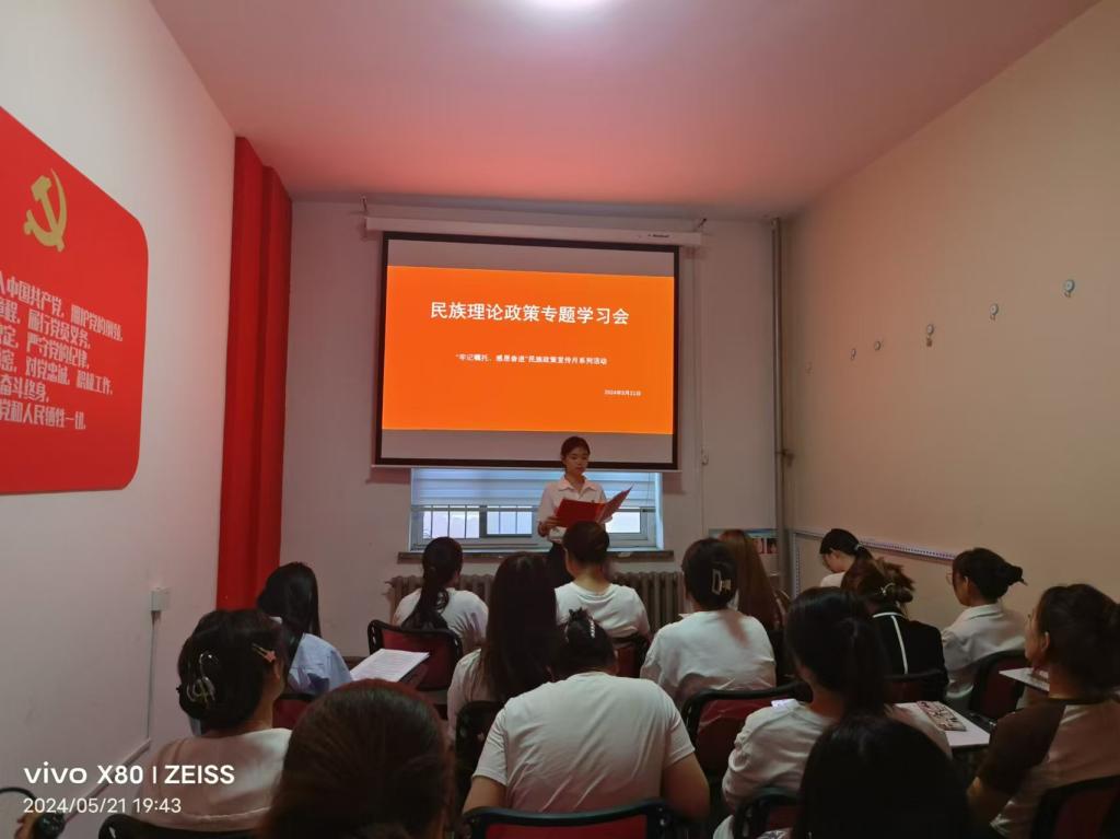 民族理论政策专题学习会。5月21日,学生党支部举办民族理论政策专题学习会活动。本次活动在“一站式”学生社区6号公寓楼党员工作站开展,18名22级、23级班委参加。活动中,首先由三位学生干部分别领学《内蒙古自治区促进民族团结进步条例》《内蒙古自治区全方位建设模范自治区促进条例》《内蒙古自治区筑牢祖国北疆安全稳定屏障促进条例》,随后同学们交流了学习心得,最后,通过知识问答检验同学们的学习成果,在问答环节同学们积极抢答,进一步了解了民族政策和民族文化知识,增强民族团结意识、丰富民族政策理论知识。