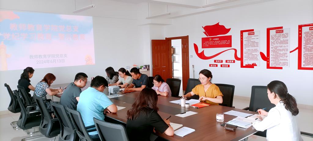 为深入学习贯彻习近平新时代中国特色社会主义思想,认真学习贯彻习近平总书记关于党纪学习教育的重要指示精神,按照学校党纪学习教育专题会议要求,6月13日下午,教师教育学院党总支召开党纪学习教育警示教育大会,全体党员参加警示教育大会。