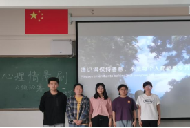 初赛正式开始前,主持人介绍了本次比赛的内容、参赛规则以及评委老师。九支参赛队伍依次进行了异彩纷呈的表演。现场观众也随着各支队伍的精彩表演时而认真严肃,时而欢乐轻松,整场表演博得了阵阵掌声。经过激烈角逐,生物科学学院的心理情景剧《抑·愈》获得第一名,教育科学学院的心理情景剧《向阳之处必有声》获得第二名,外国语学院的心理情景剧《转身拥抱阳光》获得第三名。