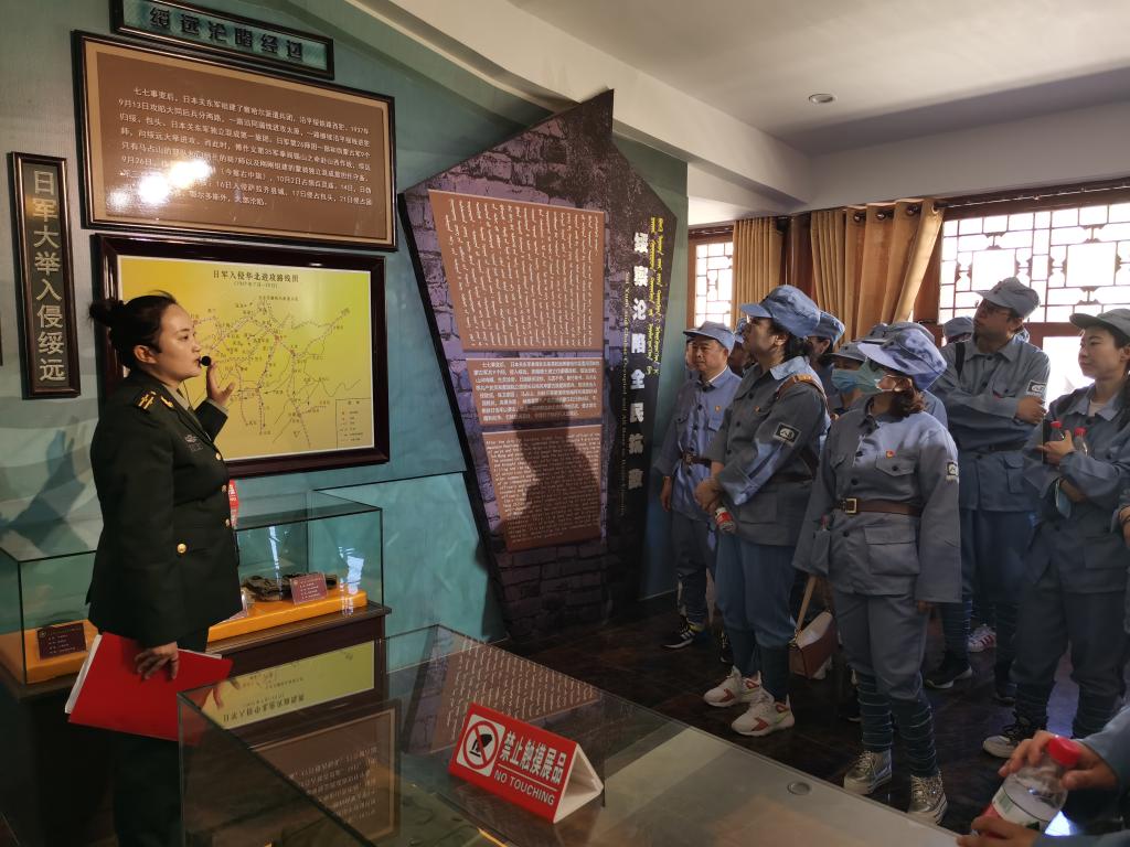 此次主题党日活动分为党性教育、现场教学、参观学习、体验互动等环节。集体乘车到达土右旗红培中心后全体教师换上八路军服装,随后驱车前往八路军大青山支队司令部纪念馆,举行了开班仪式,全体教师齐唱国歌,两个学院全体党员在教育科学学院党总支书记张岫峰的带领下面向党旗重温了入党誓词;党员及教师们随同讲解员参观了纪念馆内的革命历史陈列展,聆听了讲解教员关于革命前辈奋斗历程和英雄故事的教学讲解,使全体教师了解了革命先辈当年的红色足迹。在培训中心教员的引领下,在八路军大青山支队司令部纪念馆所在的九峰山管委会巴总尧村,组织全体老师们进行了重走抗战路线、抢占制高点、投掷手榴弹、警钟长鸣等体验活动,使老师们切身体会到了抗日战争时期斗争的艰难,,感受到了革命先烈大无畏的革命精神。