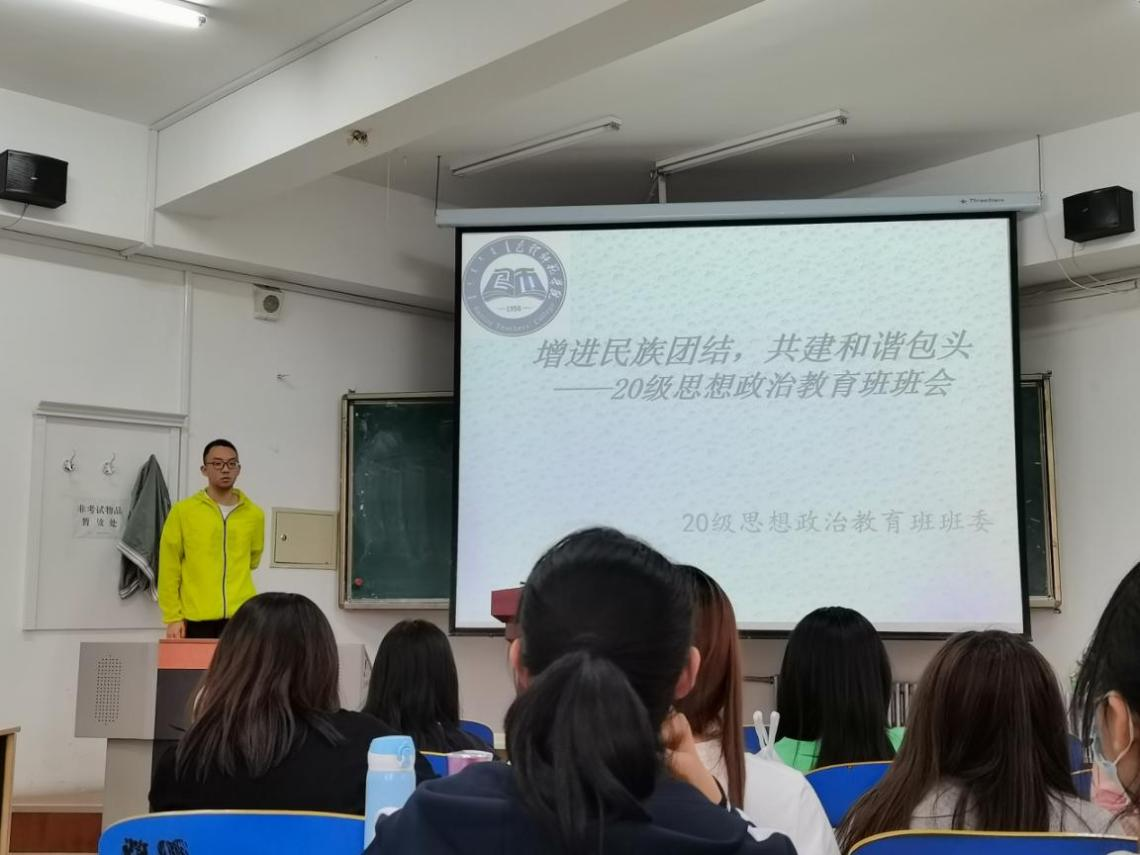 为贯彻落实《中共中央办公厅、国务院办公厅印发<关于全面深入持久开展民族团结进步创建工作牢固中华民族共同体意识的意见>的通知》,促进内蒙古自治区民族团结进步,推进“民族团结进步+”深度融合发展,激发各族同学参与民族团结创建的积极性、主动性和创造性。为此,政治与法律学院各班级在2021年5月25日前举办了“增进民族团结,共建和谐包头”系列主题班会。