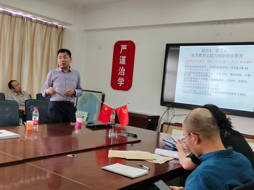 为了做好创新创业工作,加快培养创新创业型人才,迎接第七届“互联网+”大学生创新创业大赛,6月3日下午,数学科学学院邀请创新创业教育学院院长张东虎、副院长冯平和张红霞老师以及数学科学学院郭鹏云老师面向全体老师作了创新创业专题报告。