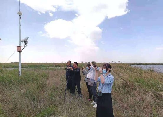 在管理处科研监测中心,通过监控镜头,大家了解湿地的生态环境和珍稀鸟类及其栖息地的情况。刘利博士就研发黄河湿地鸟类人工智能识别、监测系统开展交流。