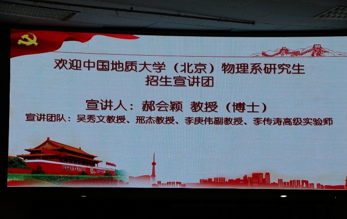 郝会颖教授对中国地大物理系进行简要介绍,并就招生方向与入学考试和培养与条件等方面进行讲解。