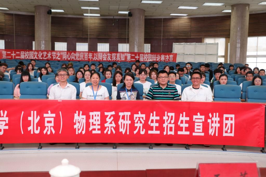 招生宣讲团队成员解答物理科学与技术学院老师与同学的问题,并且热烈欢迎本院学生报考中国地质大学。