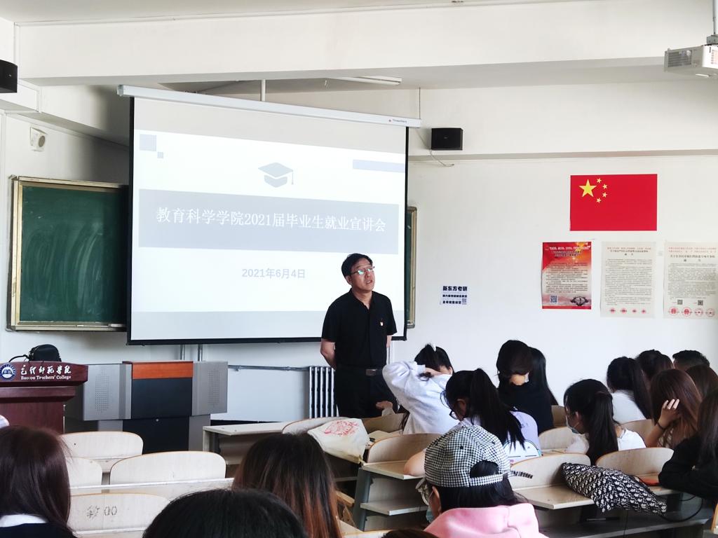 为了进一步推进毕业生就业工作,大力构建毕业生与用人单位的交流平台,教育科学学院于6月4日上午9:30在博学楼东305教室分专业举办了2021届毕业生就业用人单位宣讲会,当日下午3:00在北苑学子广场举行了用人单位校园招聘双选洽谈活动。2017级班主任和在校200多名毕业生参加了本次宣讲会。