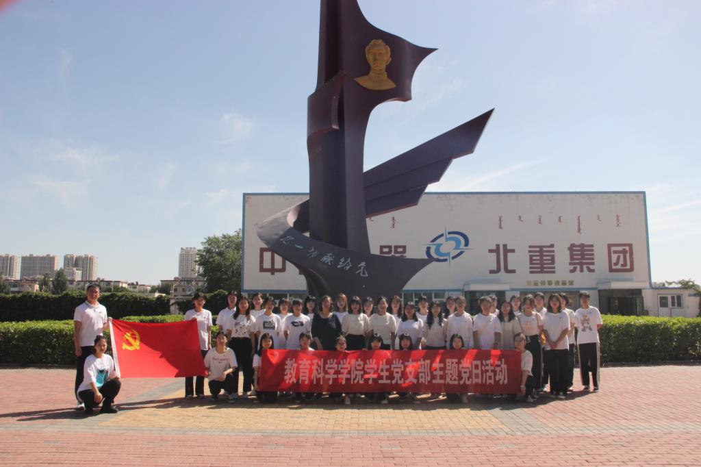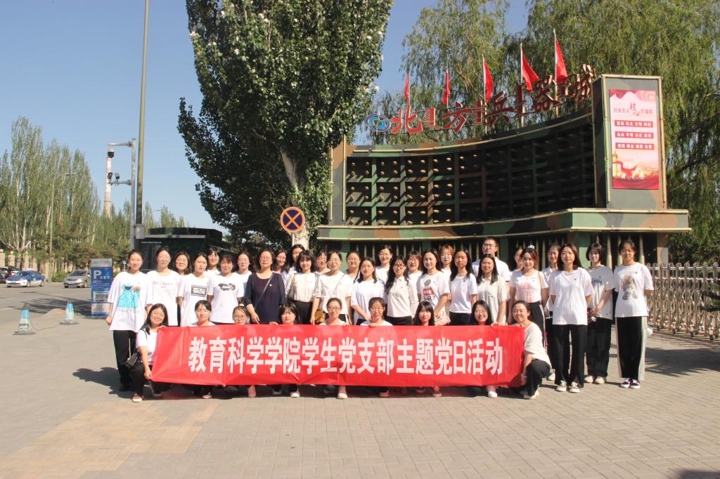 为迎接中国共产党成立100周年,进一步推动党史学习教育走深走实,增强学生党员党性修养、弘扬爱国主义精神,2021年6月25日,教育科学学院学生一支部书记王璐然、副书记姜丽娟、学生二支部书记方丽慧带领40名学生党员赴北方兵器城,开展“庆祝建党一百周年”主题党日活动。