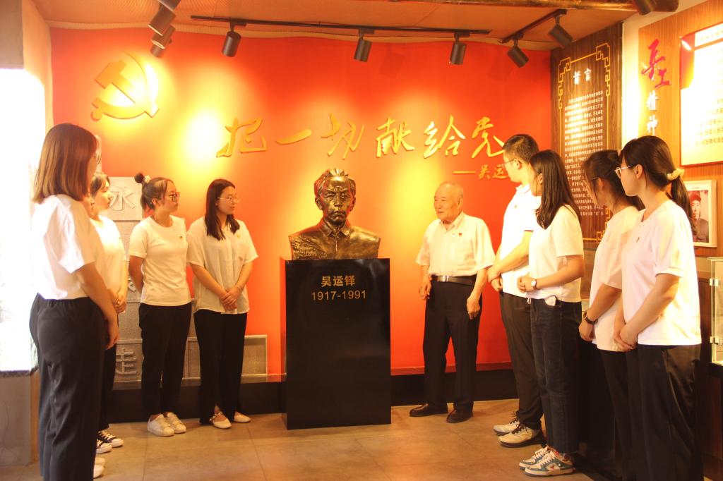 进入北方兵器城,学生党员们跟随讲解员的脚步,参观并了解了自新中国成立以来我国自主生产及引进的装甲车、火炮、战斗机和导弹等退役武器。兵器城是一处富有军事色彩的历史遗存,学生们一边参观一边交流,这种身临其境的学习方式,使大家的学习氛围变得更加浓厚,不禁感叹国家国防发展的辉煌历程,感叹中华民族抗战历史的艰苦卓绝与自强不息。随后,在吴运铎纪念馆偶遇了陈文学老人,陈老先生自愿为学生党员讲了一节生动的党课,介绍了吴云铎的光辉事迹。学生们深切感受到像吴运铎同志一样的老一辈共产党人把献身党的事业作为毕生追求的崇高理想、为党和人民的事业鞠躬尽瘁的伟大精神,陈老也激励同学们作为师范生,要牢记初心使命、坚定理想信念,要与时俱进、立德树人,争做新时代“四有好老师”。在吴运铎纪念馆,全体学生党员面向党旗重温入党誓词,声音铿锵有力,再次立下了为共产主义奋斗终身的庄严承诺。