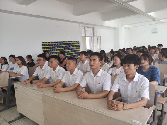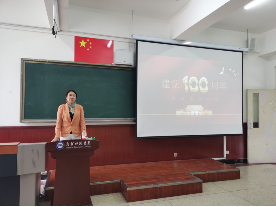 学院党总支书记李慧龙以“学习党史的历程”为主题,结合自己的进修经历为全院师生讲授了一堂生动的党课。为了强化党员身份意识,学生党员代表常笑楠、马晓健饱含深情的做了“党旗下的演讲”,以学生党员的身份表达了对祖国、对党的热爱。