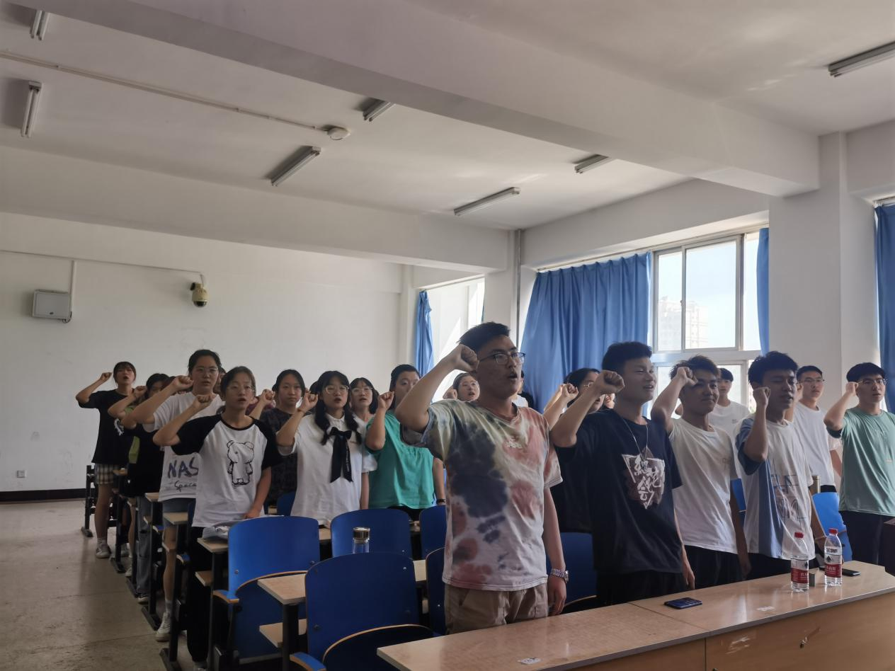 最后,同学们在班长的带领下进行了诚信考试的誓言宣誓。同学们情绪饱满,精气十足,表现出了诚信考试的决心,在举起的右拳上也承载了诚信的力量!