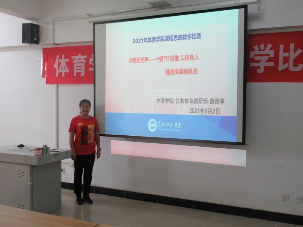 本次教学比赛既展现了体育学院老师们在教学上的智慧与闪光点,也成为教师们互相学习、思维碰撞、展示教学风采的平台,为提高整体教学水平和人才培养质量,起到了重要的作用。同时,也是体育学院党建与教学工作的一次有效结合。通过比赛我们也发现了一些问题,如对“课程思政”的理解还不是很到位、切入点找的不够精准,融入的思政元素有些生硬、思政元素与课程目标对应关系不够明确等。接下来学院将通过认真总结比赛经验,把比赛的教学设计和教学实践经验拓展到日常教学和课程教学改革研究中。(体育学院)