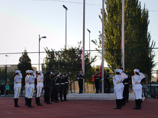 早上六点五十分,升国旗仪式正式开始。迎着朝阳,包头师范学院国旗护卫队迈着铿锵步伐来到了国旗台下,全场一片肃静。在激昂的国歌声中,鲜艳的五星红旗冉冉升起,全体师生肃立,向国旗行注目礼,表达了对祖国的无限热爱。