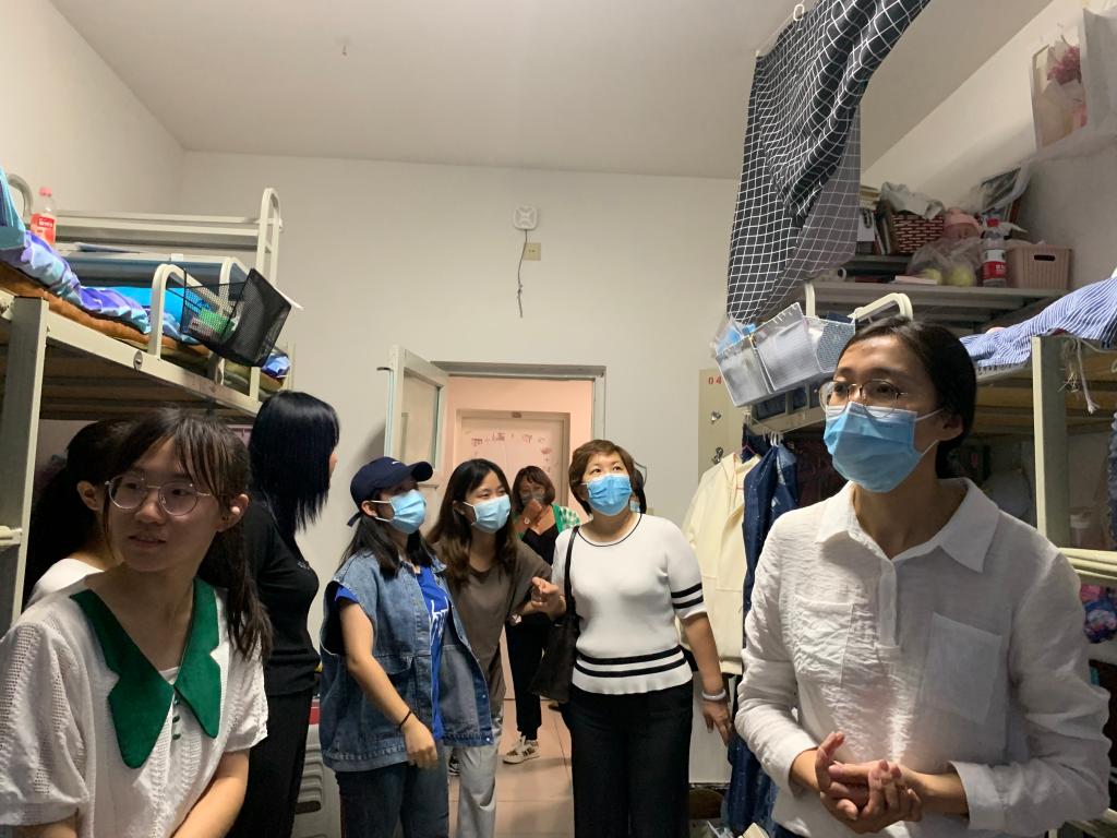 一行8位教师分两批走访了10号和12号两座公寓楼,询问新生来校后的生活情况,对新生提出基本的纪律要求,并要求学生克服懒散懈怠心理、养成良好学习习惯、刻苦学习专业知识,为后续发展打好基础。(数学科学学院)
