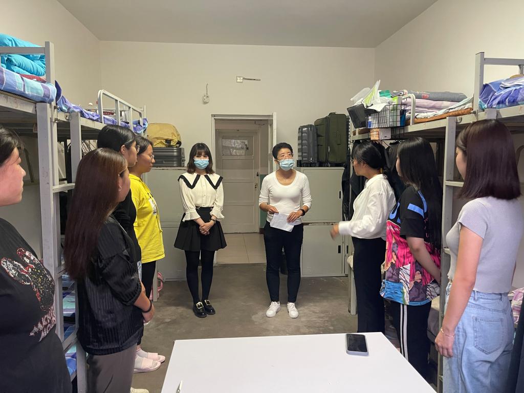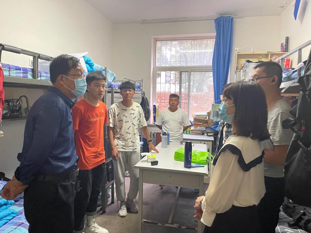 ——深入宿舍,看望新生。截至9月3日下午,教育科学学院3个专业260本科生和60名专升本学生均已报到入校。当日下午5:00,党总支书记张岫峰、副书记李燕带领辅导员方丽慧、王璐然分别深入新生宿舍看望新生。张书记在走访男生公寓时,仔细询问了新生对新环境的适应情况,了解同学们对学院的印象和感受,鼓励新生要尽快适应环境,珍惜大学时光,充分利用大学的平台锻炼自己的能力,提高素质,增长才干。李书记提醒同学们注意用电安全、遵守校规校纪、叮嘱同学们及时添衣保暖避免感冒,且注意保持室内通风,共同打造一个舒适整洁的生活环境。各新生班主任也深入本班新生所在各宿舍进行走访,仔细询问新生进校后的感受,饮食、住宿、生活等各个方面的情况。鼓励新生提高自理、自立的能力,希望新生们以积极的心态和良好的面貌适应大学校园的学习节奏。除此之外,还细心叮嘱了宿舍用电安全、外出交通安全、人身财产安全等问题,提醒新生们做好疫情期间的自我防护工作。