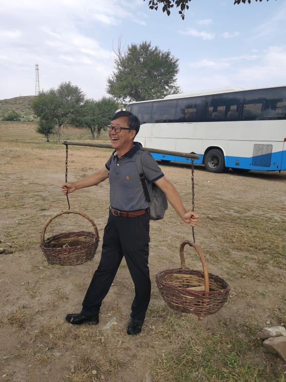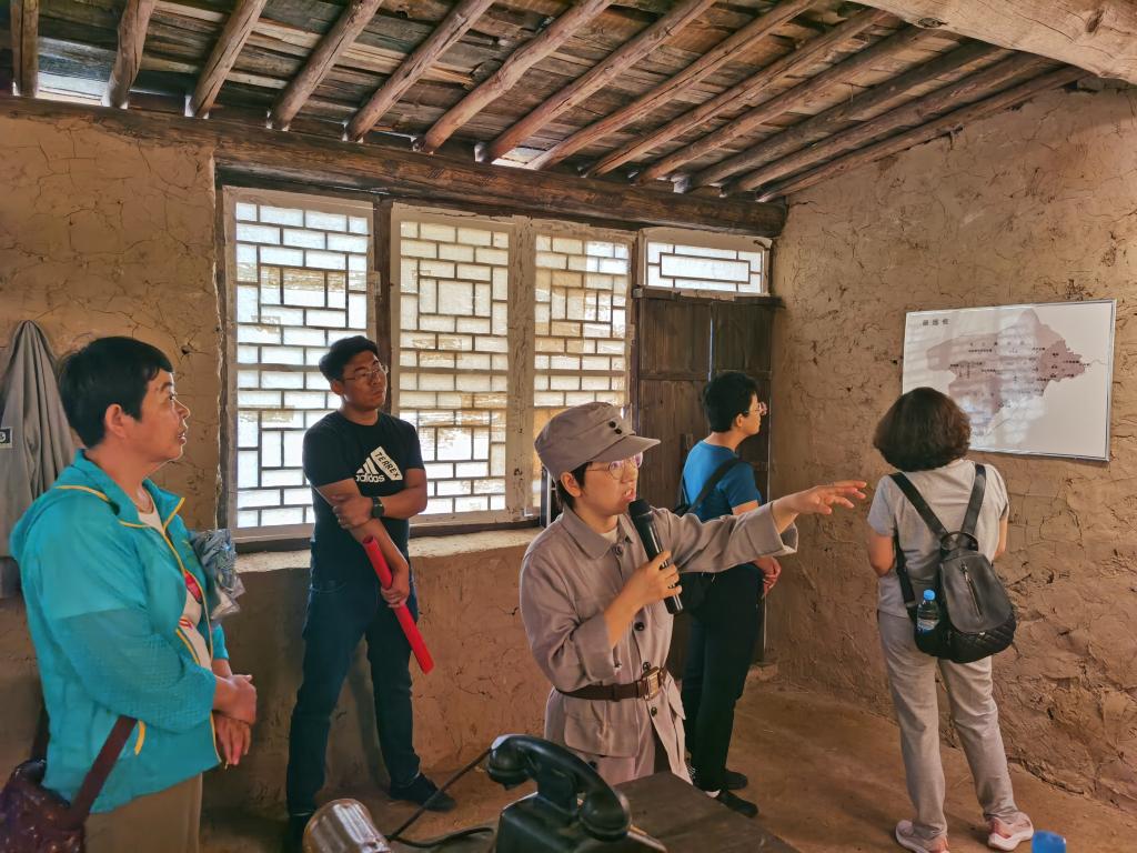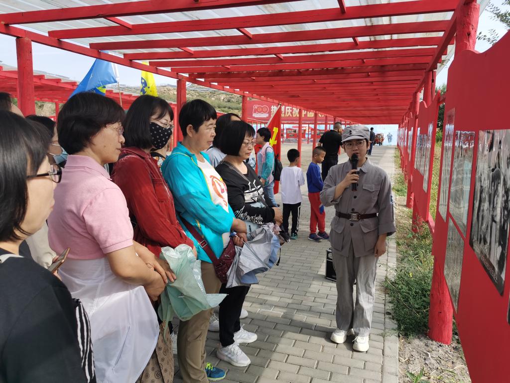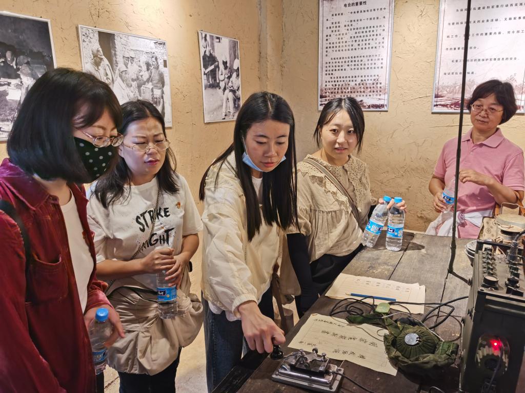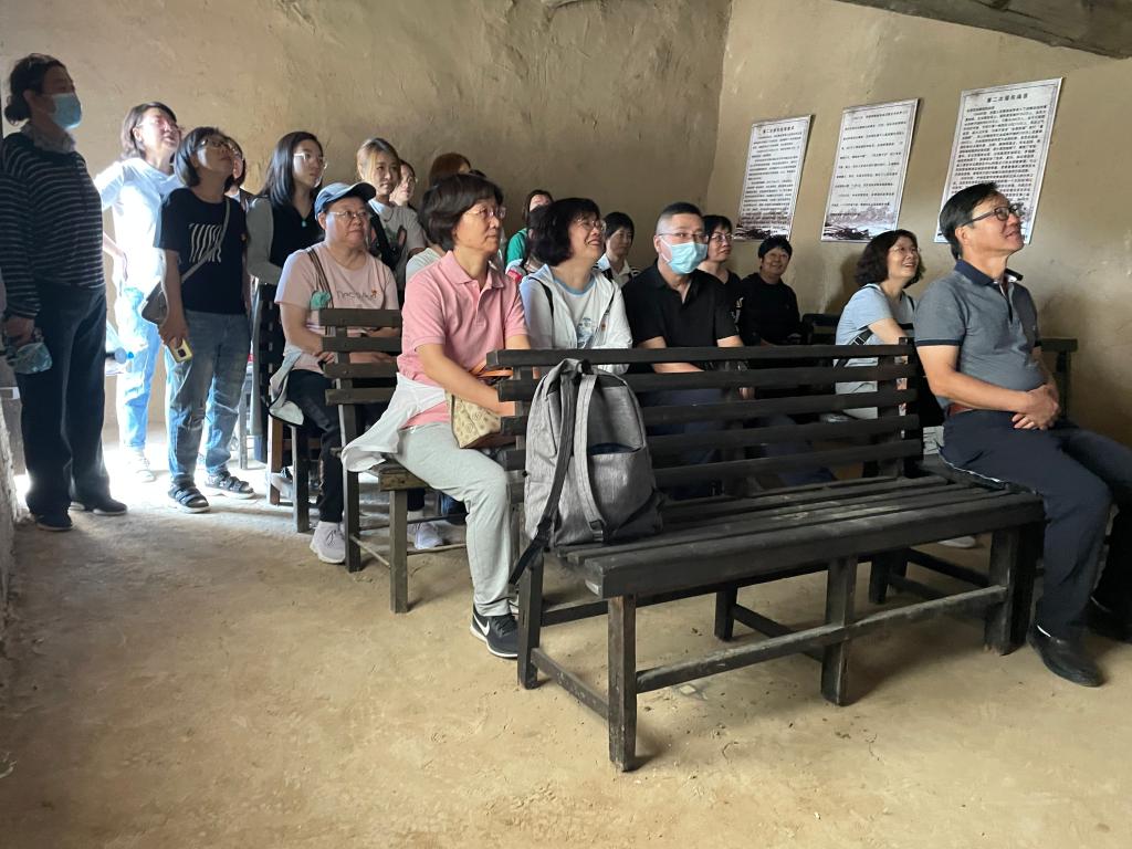 此次主题党日活动分为党性教育、参观学习、体验互动等环节。教师集体乘车到达石拐区大青山抗日历史党建基地后,首先举行了授党旗仪式,由教育科学学院党总支书记张岫峰将鲜红的党旗传递,由教师党员代表高学明老师接旗,表示传承红色基因,开启了走进大青山、探访抗战路的现场教学活动。其次,在讲解员的带领下,老师们体验了“挑扁担”“推独轮车”,开始了“唱革命歌曲”的徒步行军。讲解员沿途生动地介绍了大青山地区革命历史背景、历史遗迹及历史事件。在大青山革命历史长廊,讲解员带着老师们参观了200多幅珍贵的照片、生动地讲述了革命历史人物、先烈的抗战故事,老师们被老一辈无产阶级革命家及革命先驱的理想信念、不怕牺牲、英勇抵抗日本军国主义侵略的英勇行为所感动、所激励。
