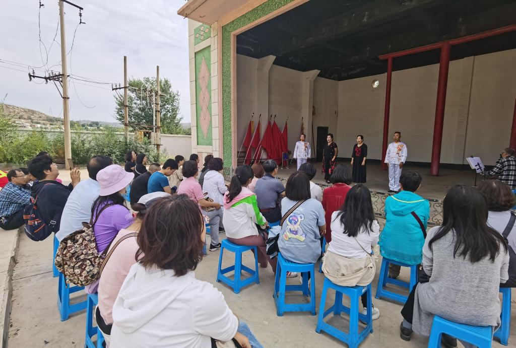 随后老师们参观了“绥包战役”贺龙元帅指挥所旧址,在人民子弟兵雕像前,党总支书记张岫峰带领全体教师面向党旗重温了入党誓词,并合影留念。党员及教师们随同讲解员参观了纪念馆,纪念展馆复原了大青山抗日游击根据地党、政、军办公场所,陈列了八路军用过的电台、战刀、手榴弹、火盆、粮袋等实物,再现了根据地抗日军民艰苦卓绝的抗战经历。老师们聆听了关于革命前辈奋斗历程和英雄故事,了解了革命先辈当年的红色足迹,再次感悟了红色革命精神。在讲解员的引领下,老师们沿包石铁路返回,通过讲解员的讲述,感受抗日战争、解放战争、新中国时期非同寻常的历史作用。重走抗战路线后,老师们汇聚革命剧场,观看了革命样板戏《红灯记》、《沙家浜》、《智取威虎山》、《红岩》等京剧作品选段。有的老师还参与了革命现代京剧的演唱互动。