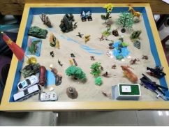 本次活动邀请了来自马克思主义学院文科班和理科班各3名,共6名同学参与活动。活动在心理咨询中心张鹏老师的带领下进行。参与活动的同学在制作箱庭作品环节均踊跃参与,认真完成。在完成作品后的分享讨论环节各抒己见,畅所欲言。各位同学凭借默契共同完成了属于他们大学生涯的第一个箱庭作品。