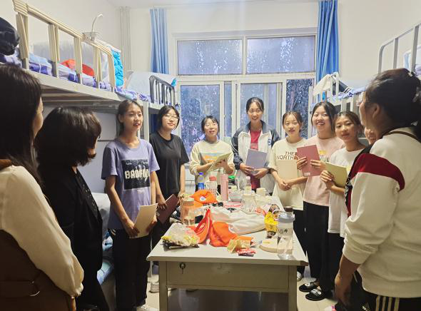 学院领导和老师们为同学们送上节日祝福。走访中,老师们亲切询问了新生们在校学习、生活状态、军训等情况,叮嘱同学们按时吃饭、注意身体,并希望大家尽快融入集体,互相关心,共同成长;鼓励大家树立目标,在课程学习、语言能力和综合能力素质提升等方面不断努力,在外国语学院度过愉快地四年时光。