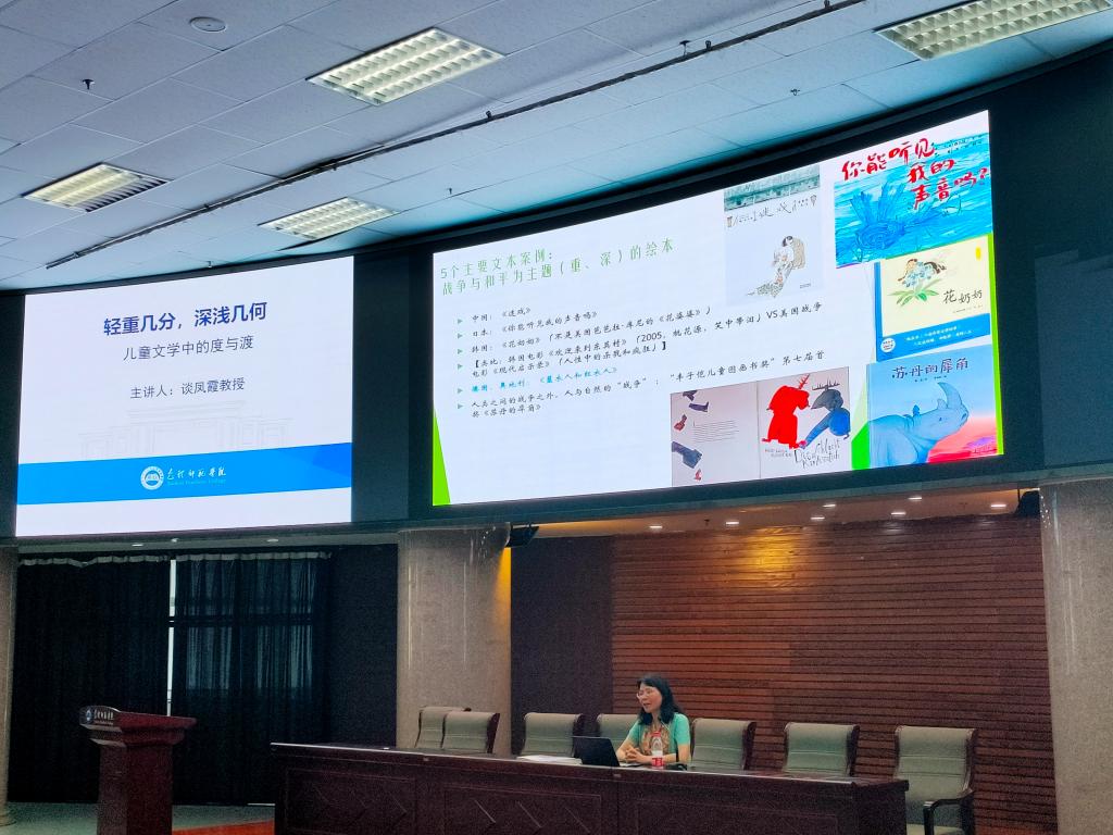 9月23日下午,教育科学学院特邀南京师范大学文学院博士生导师谈凤霞教授在学术报告厅为教育科学学院小教教育、学前教育师生做了题为《轻重几分,深浅几何——儿童文学中的度与渡》的学术讲座,讲座由教育科学学院颉瑛琦老师主持。本次讲座为教育科学学院学术活动月系列活动之一,旨在通过举办系列高水平的学术活动促进校际交流,为师生营造良好的学术研究和学习的氛围。