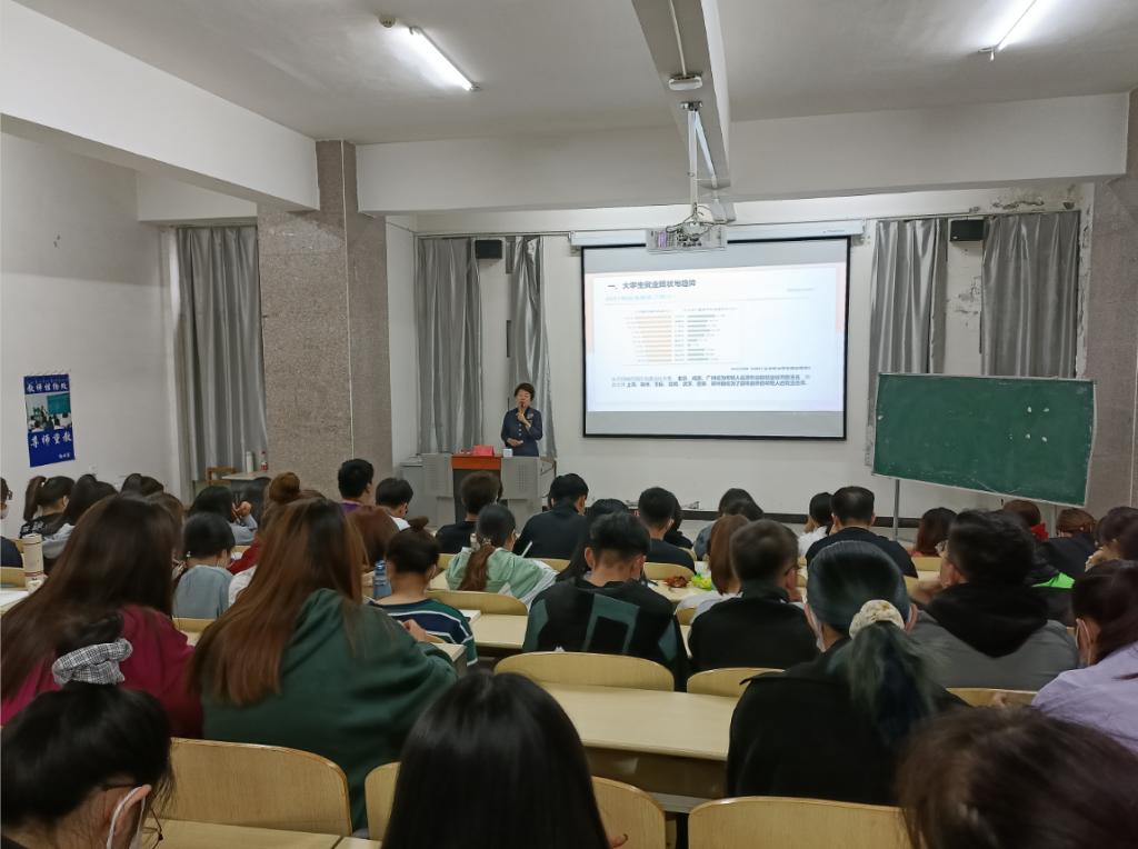 冯丽老师通过翔实地数据,为毕业生们分析目前高校的就业形势,对目前大学生就业与择业目标、心态和效果进行了全面的分析,并结合近年来我院毕业生的实例做了详细的分析,对毕业生未来就业方向及可能遇到的问题,进行了细致的指导,在互动环节耐心解答了同学们提出的问题。