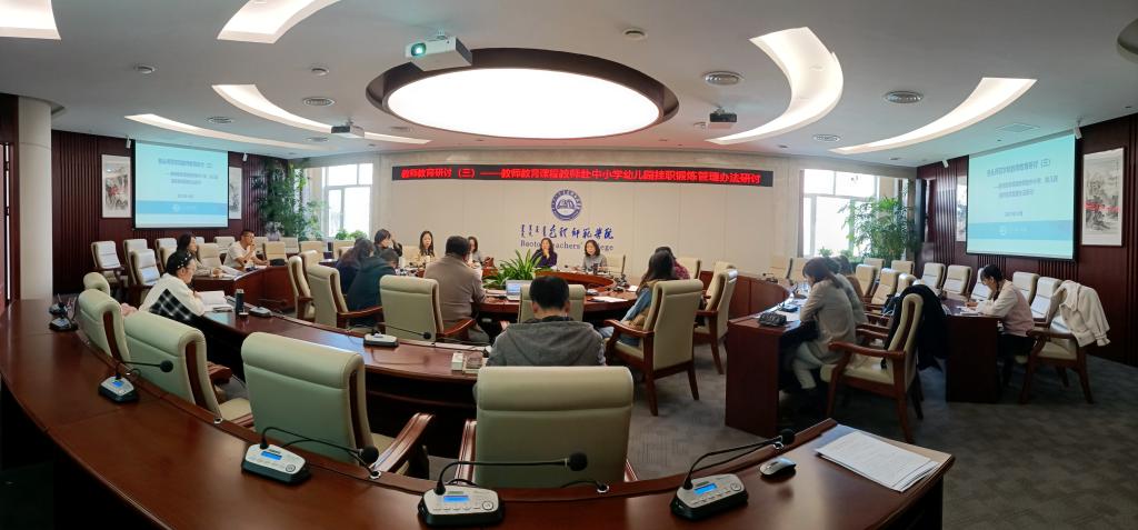 10月19日下午,教师教育学院在第二学术报告厅召开第三场教师教育研讨会暨教师教育课程教师赴中小学、幼儿园挂职锻炼管理办法会议。教师教育学院全体人员、各师范类专业20余位学科教学论教师参加了研讨会,会议持续了3个多小时。会议由教师教育学院党总支书记周慧霞主持。
