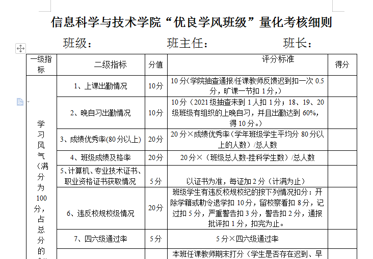 为进一步落实全校“学风建设工作推进会”精神,信息学院通过召开会议、制定考核制度、加大宣传推广、加强日常监督检查等举措,领导班子、学工办、班主任、任课教师、各班级多级联动,共同推进学院学风建设工作。
