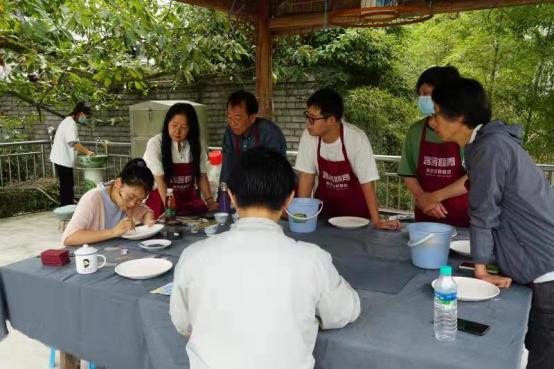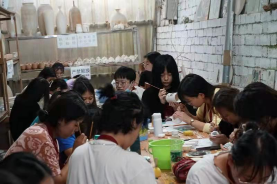 在此次考察过程中,我们还聘请景德镇的几位专家带领学生们下到实地进行文献资料与图像的采集,指导教师根据学生兴趣选择考察主题,并确定小组成员及各成员的分工;在此基础上进行陶艺作品绘制,进一步锻炼学生田野的工作方法,根据前期所学的专业理论和专业技能,理论结合实际,进行田野调查。教师每天对学生的考察内容、思路、方向以及考察笔记等内容进行讨论与调整;辅导学生对重点考察内容进行多视角的分析与整理,辅导学生发现问题并进一步进行深度考察。